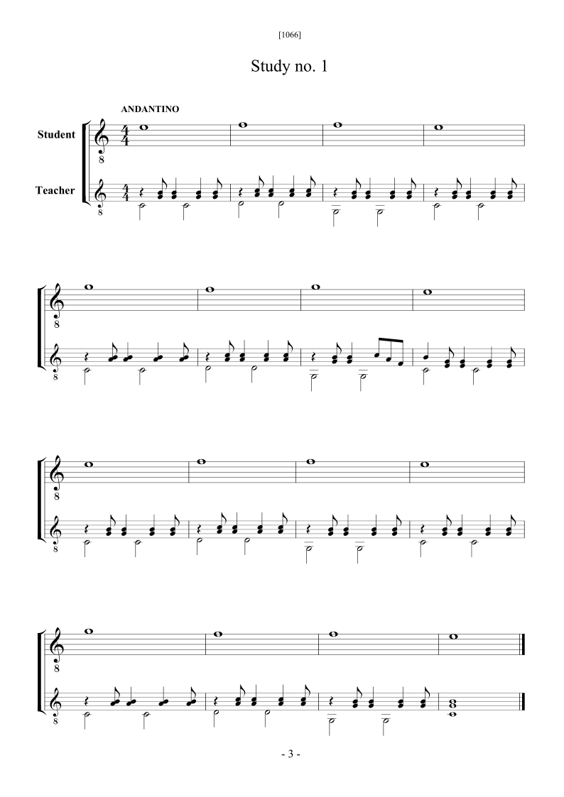 Preliminary guitar studies (first four strings) with accompaniment for the teacher